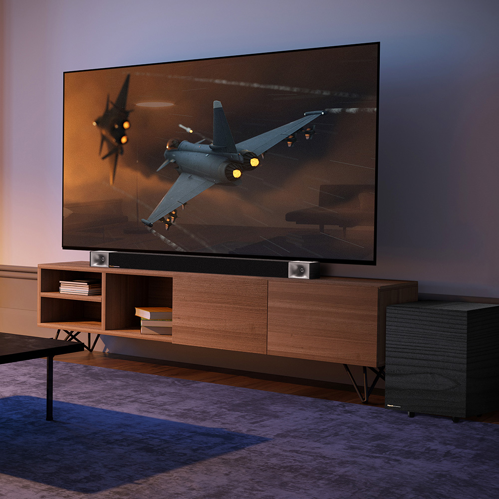 Cinema-quality sound is here. The Klipsch Cinema 800 Dolby Atmos Sound Bar decodes 7.1.4 Dolby Atmos from 8 drivers for a truly immersive experience.